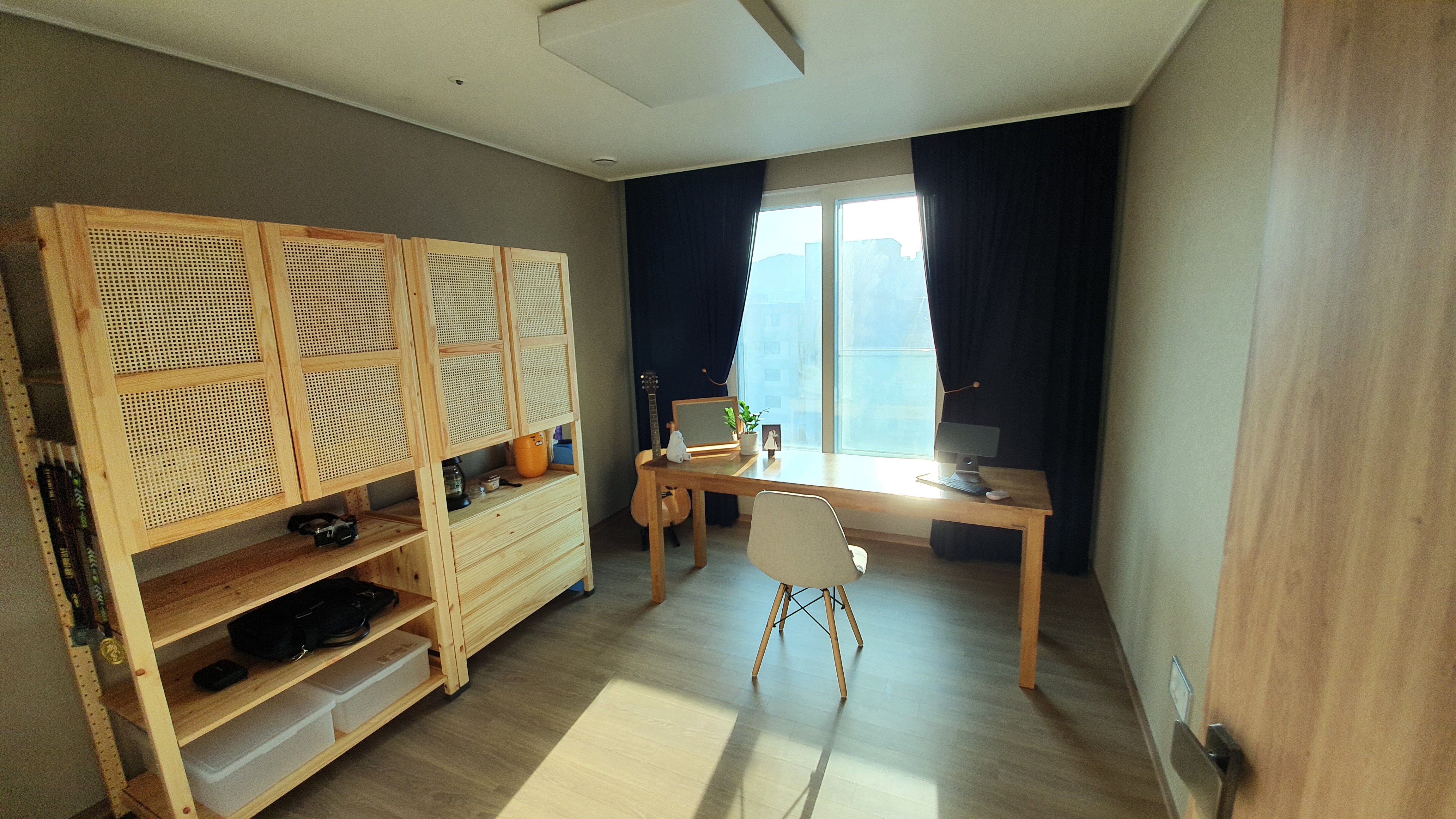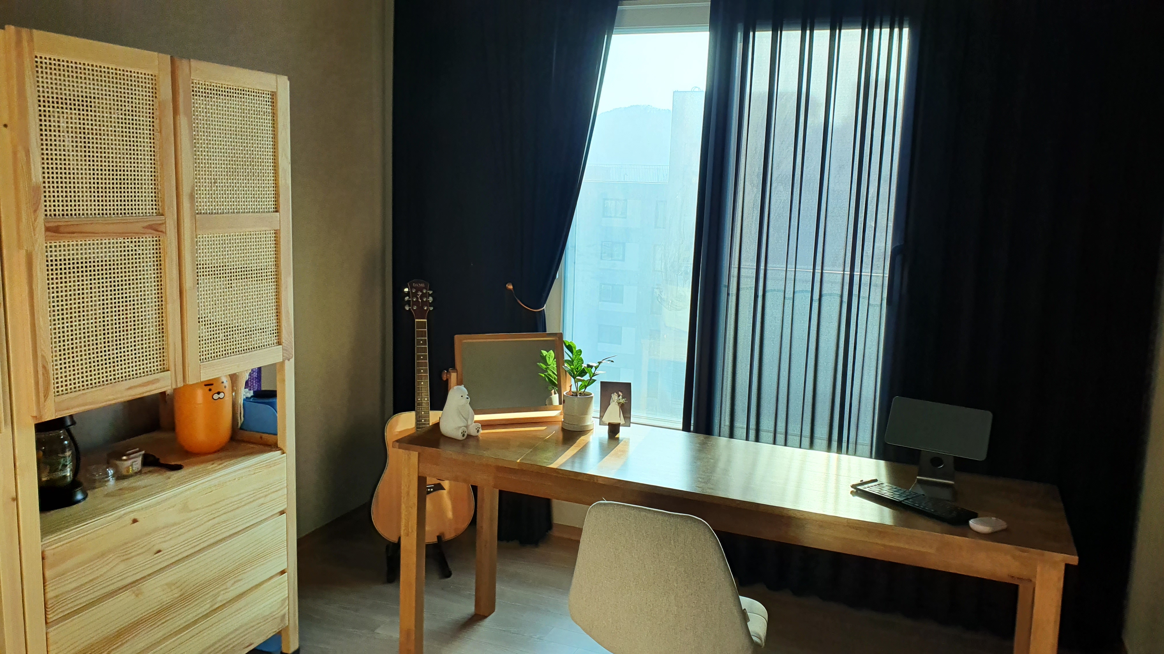 남들이 흰 커텐을 할 때, 검은색 커튼 사이(동대문에서 직접 맞춤)로 빛이 들어오면 얼마나 예쁠까?라는 생각으로 조합해봤는데