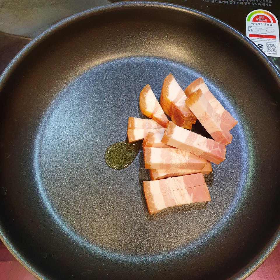 판체타를 굽는 동안 기름이 나오니까 처음에만 살짝 올리브유 둘러주고 굽기!
