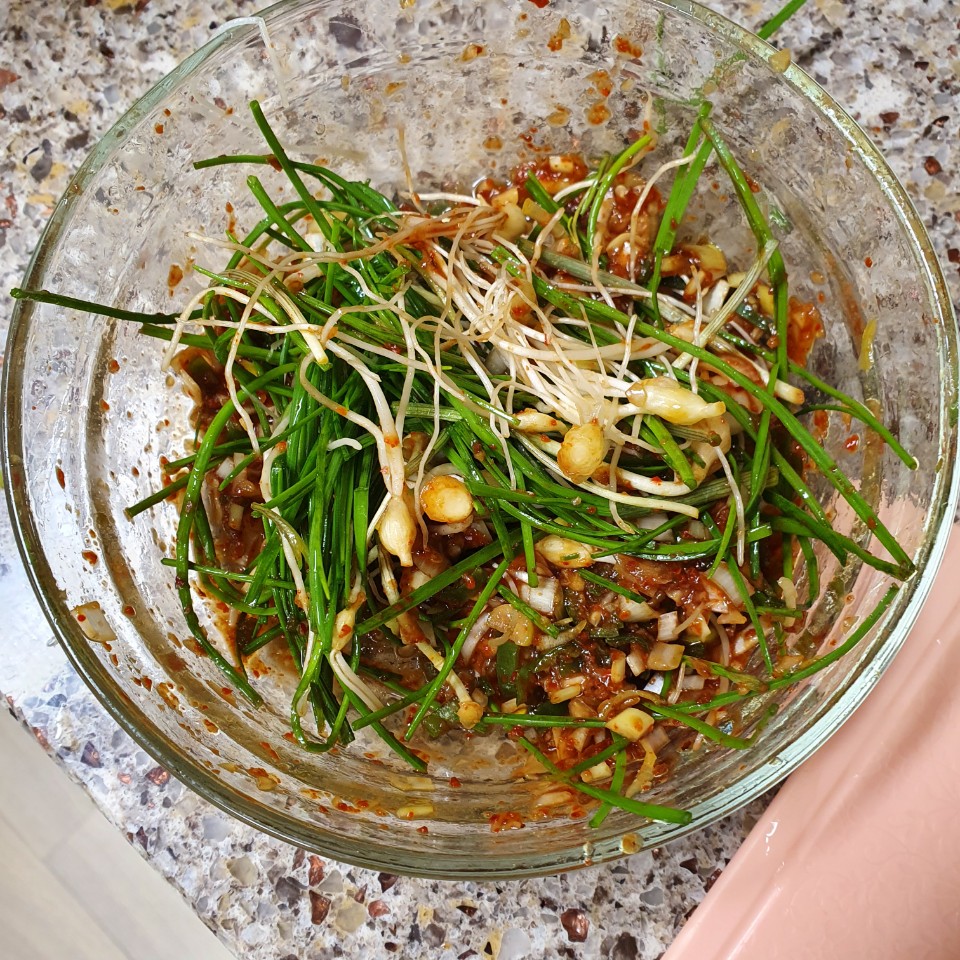 씻은 달래를 적당한 크기로 송송 썰어주고 나서 섞어주기만 하면 끝! 참 쉽죠? 쟁여 두고 오래 먹기는 힘든 봄나물이지만 그때 그 때 향긋함을 즐길 수 있는 건 좋아! 과연 언제까지 내가 열심히 요리할 수 있을까?ㅎㅎ