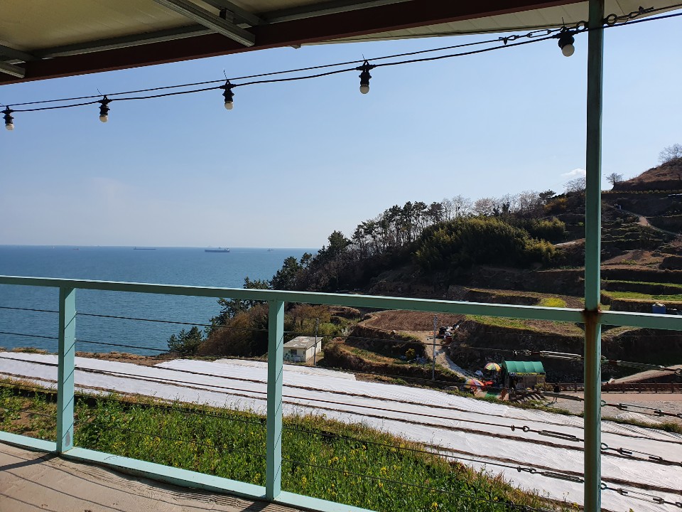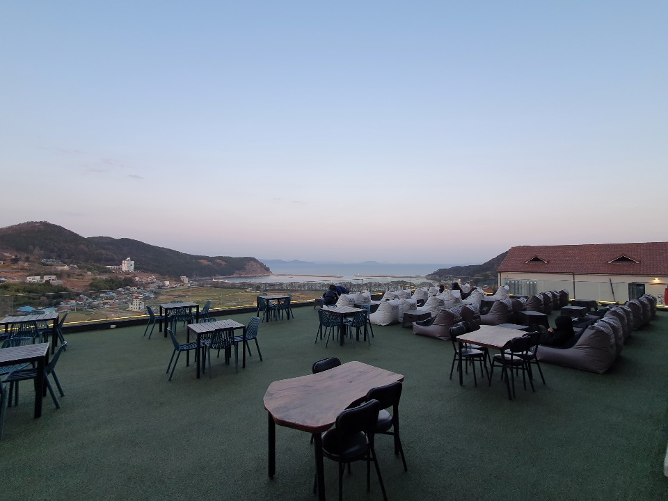 겉모습에서 이미 감각적인 인테리어가 마음에 들었다. 현재는 2층까지 오픈되어있었고 실내에서도 바다를 볼수 있지만 1층에서 밖으로 나가면 좀 더 야외를 즐기면서 먹을 수 있다.