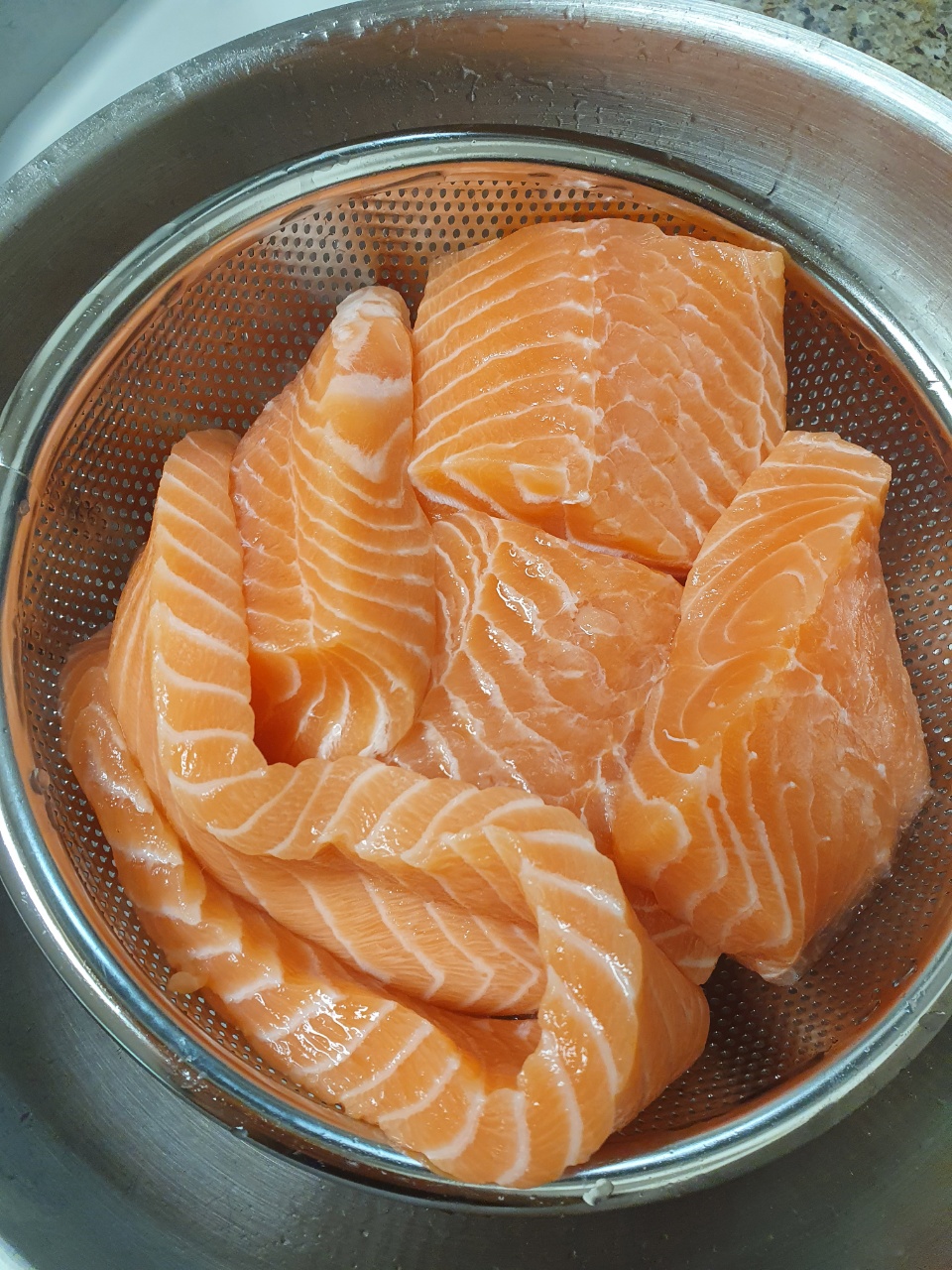 코스트코에서 장을 볼때면 늘 고민이었다. 사고 싶긴한데 2인 가구에서 연어를 사면...신선하게 다 먹을 수 있을까?ㅎㅎ 연어가 비싸진 요즘 연어덕후는 저질럴버렸다! 약 1.2kg에 35000원으로 연어