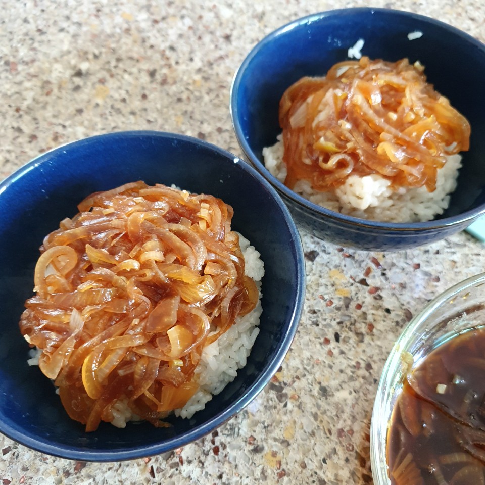 연어 해동되는 동안 갓 지은 밥을 프고 그 위에 소스를 밥에 충분히 적셔주고 양파 올리기! 그 위에 연여를 에쁘게 돌려가면서 올리기!